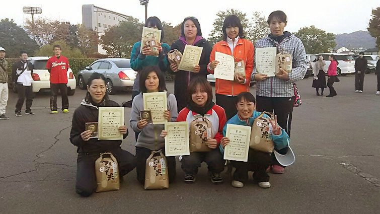 女子ダブルス入賞者 後列 第3位、前列左から 優勝、準優勝